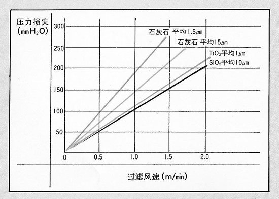 不同粒徑粉體其過(guò)濾風(fēng)速及溫度變化同阻力損失的關(guān)系(見表三、表四)。
