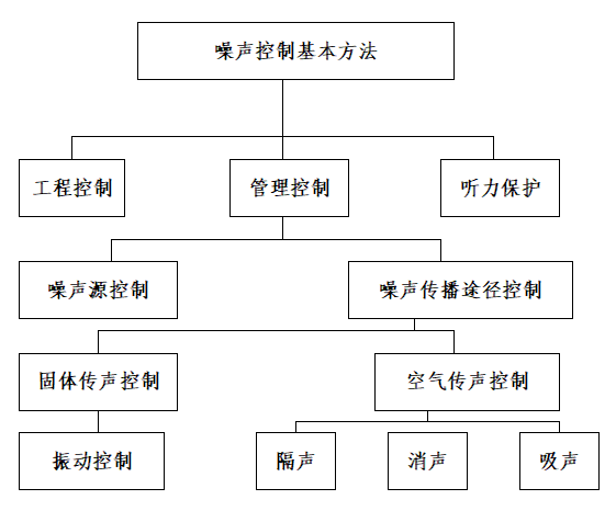 噪聲控制的基本方法主要有:一是管理方面的,另一是技術(shù)方面的。用行政管理辦法和技術(shù)管理辦法控制噪聲叫管理控制,用技術(shù)手段控制噪聲叫工程控制。噪聲控制的基本方法可用下圖表示: