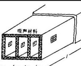 ? ? 迷宮式消聲器也稱室式消聲器。在輸氣管道中途,例如,在空調(diào)系統(tǒng)的風(fēng)機出口、管道分支處或排氣口,設(shè)置容積較大的箱 ( 室 ) ,在它里面加襯吸聲材料或吸聲障板,就組成迷宮式消聲器,如圖所示。這種消聲器除具有阻性作用外,通過小室斷面的擴大與縮小,還具有抗性作用,因此消聲頻率范圍較寬。?