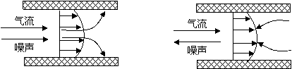 B)逆流時(氣流與聲傳播方向相反) ,聲波向管道中心彎曲,導(dǎo)致聲波與吸聲材料接觸減少,不利于消聲降噪。