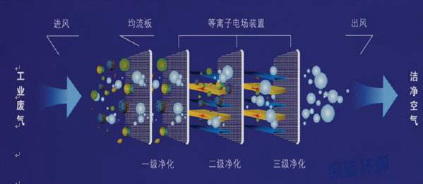 等離子體內(nèi)部產(chǎn)生富含極高化學(xué)活性的粒子,如電子、離子、自由基和激發(fā)態(tài)分子等。廢氣中的污染物質(zhì)與這些具有較高能量的活性基團發(fā)生反應(yīng),轉(zhuǎn)化為CO2和H2O等物質(zhì),從而達到凈化廢氣的目的。適用范圍廣,凈化效率高,尤其適用于其它方法難以處理的多組分惡臭、有機廢氣,設(shè)備占地面積??;電子能量高,幾乎可以和所有的惡臭、有機廢氣分子作用;運行費用低;反應(yīng)快、停止十分迅速,隨用隨開。但一次性投資費用較高。